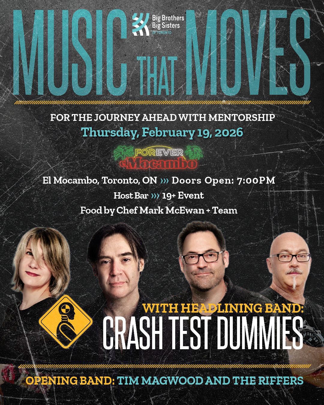 Join us on February 19, 2026 at El Mocambo for the journey ahead with mentorship with a night of live music from The Crash Test Dummies & Tim Magwood & The Riffers in support of Big Brothers Big Sisters of Toronto.
